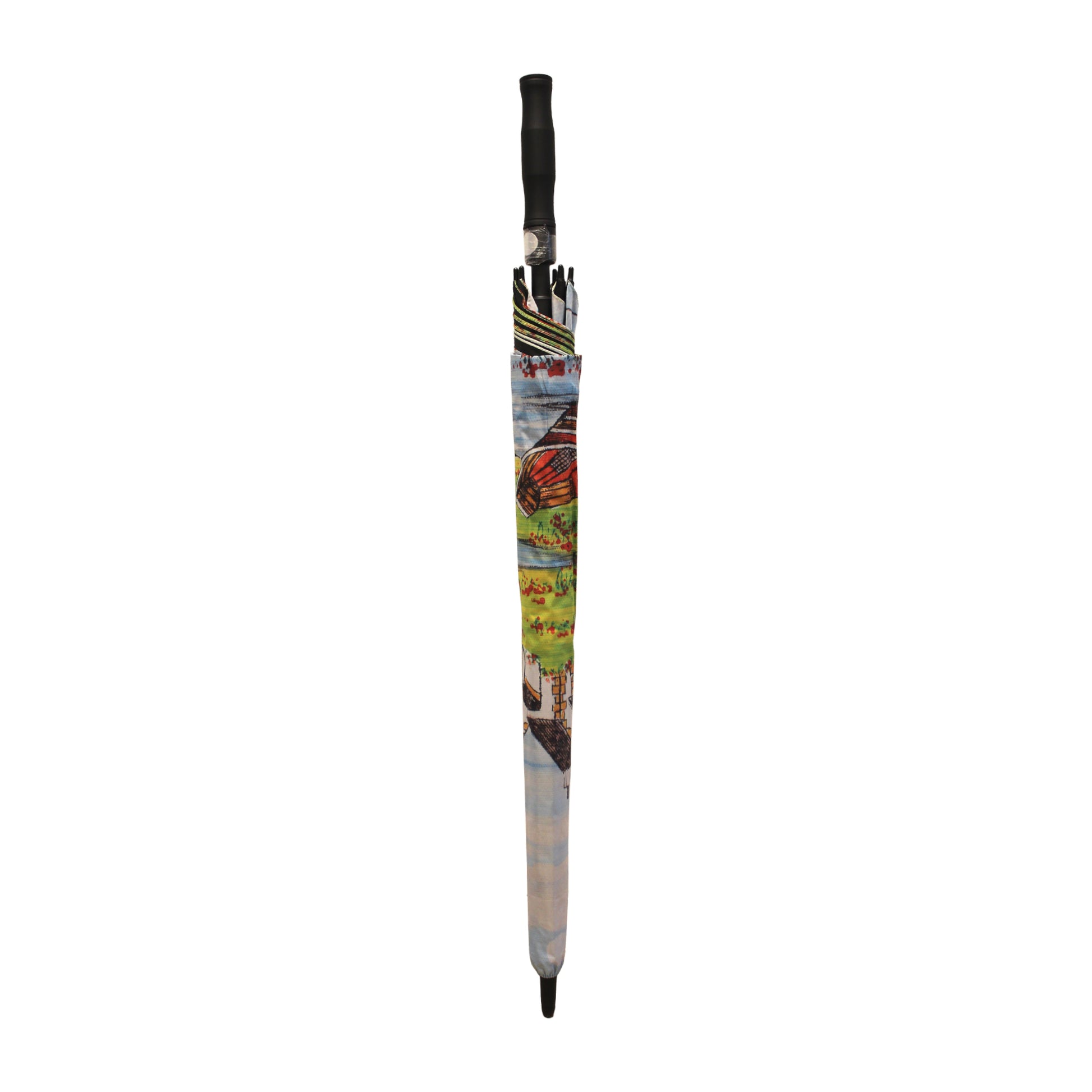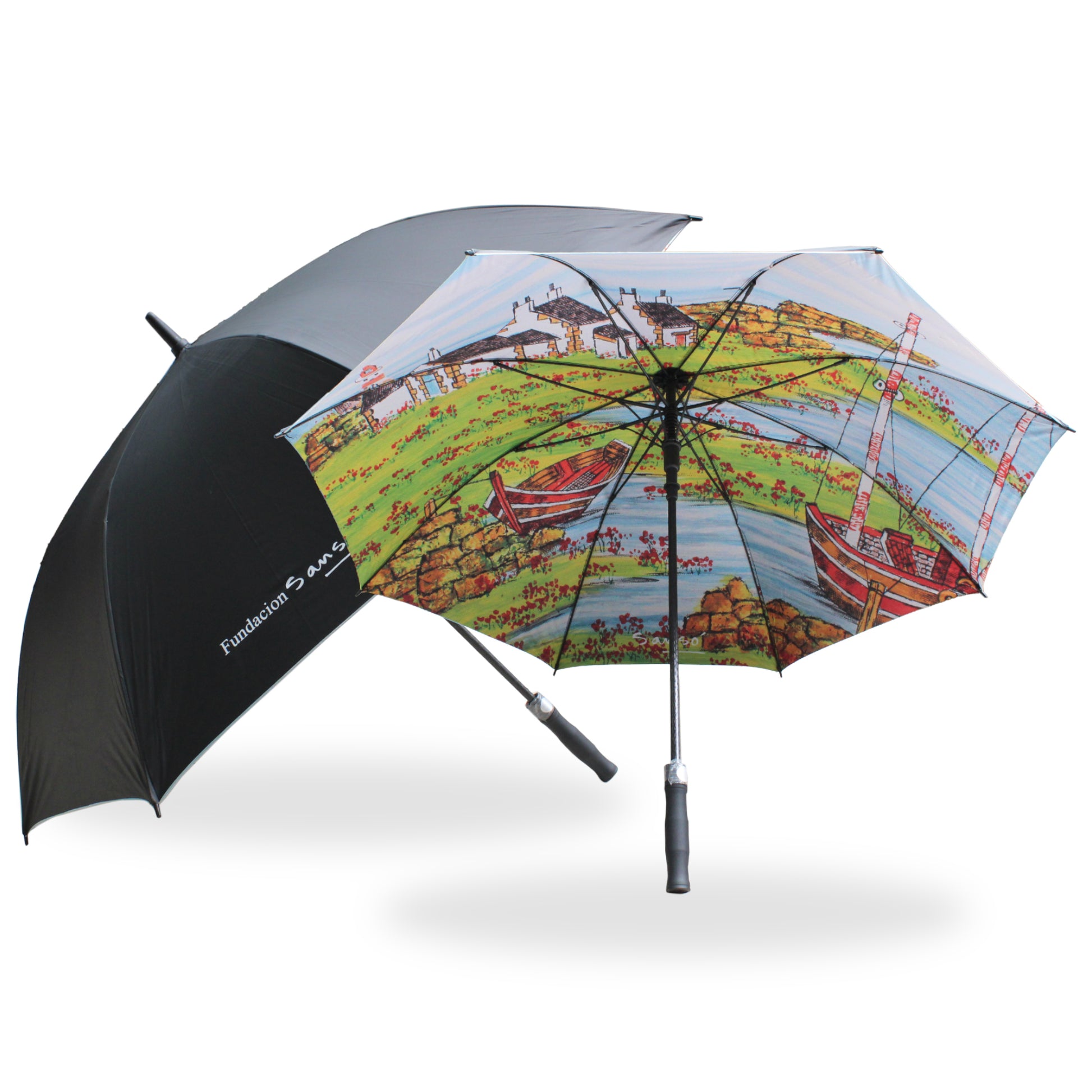 A golf size umbrella inspired from Juvenal Sansó's breton artwork.