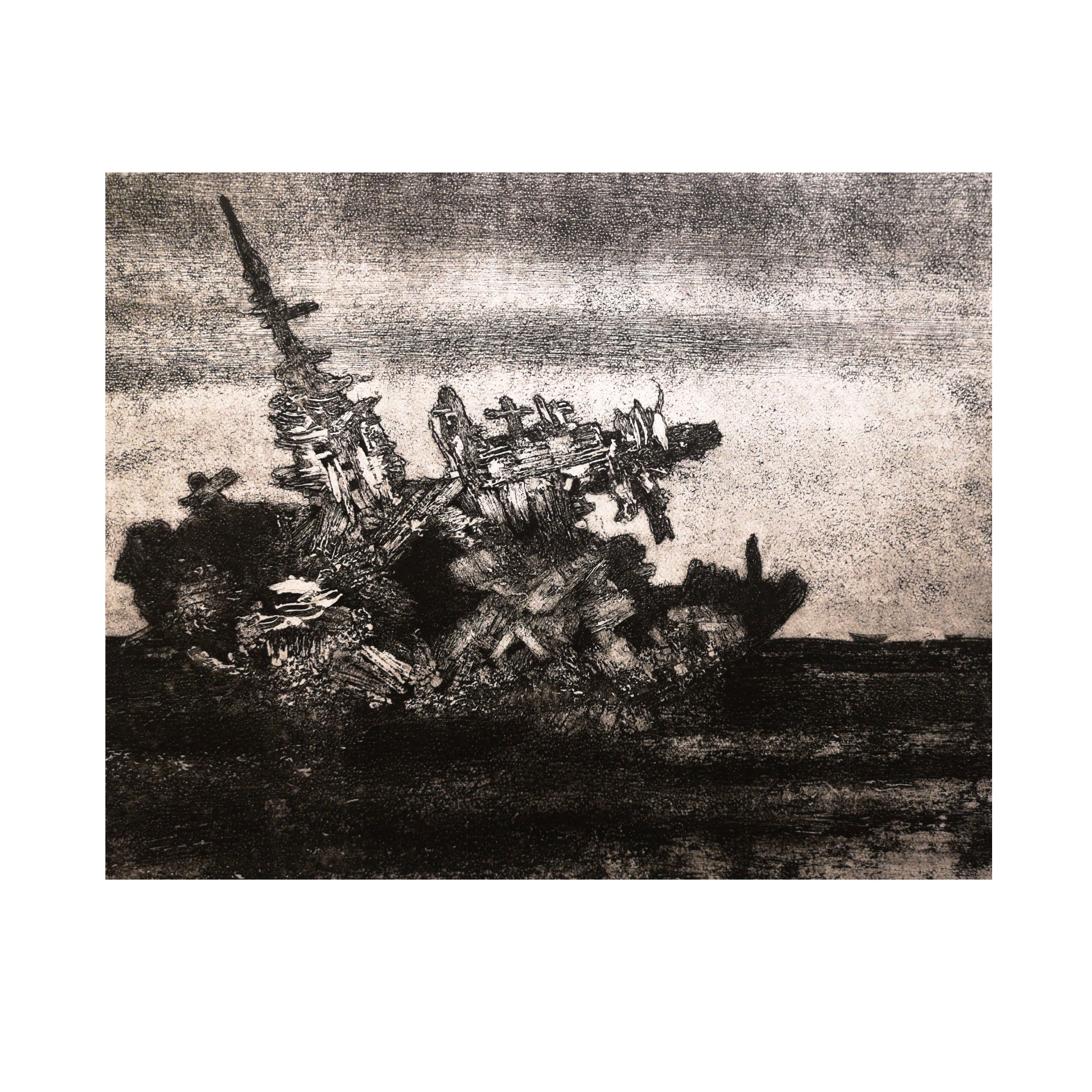 “Derelict Boat” is a restrike etching of Juvenal Sansó.