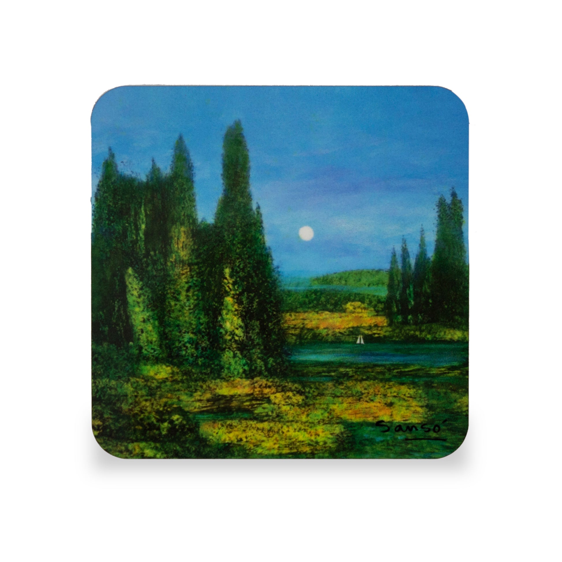 This coaster is based on an artwork by Juvenal Sansó entitled “En Es Jardin” which is part of his Brittany Series.