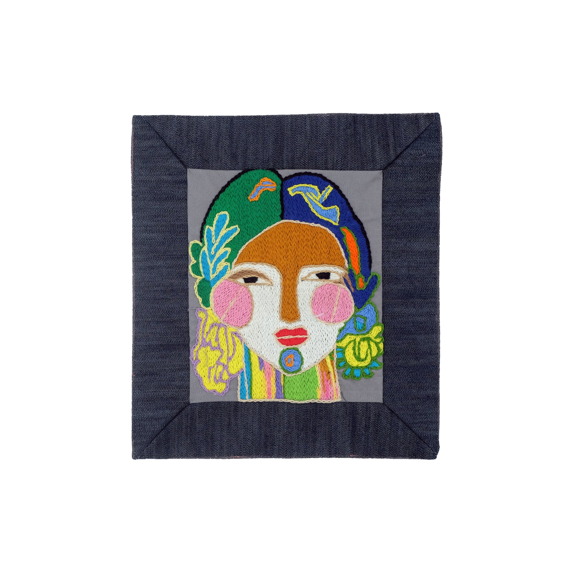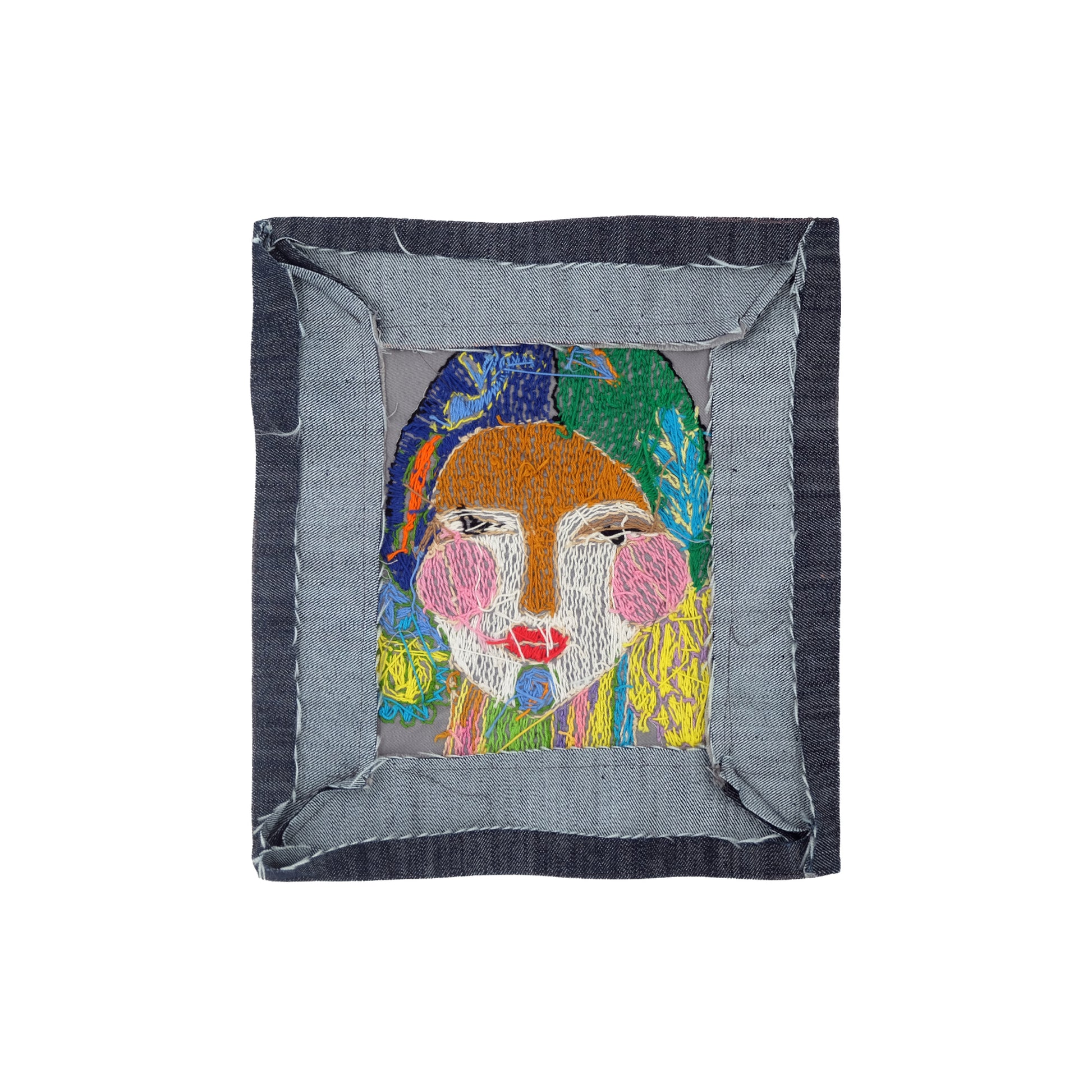 Hand embroidery on upcycled denim