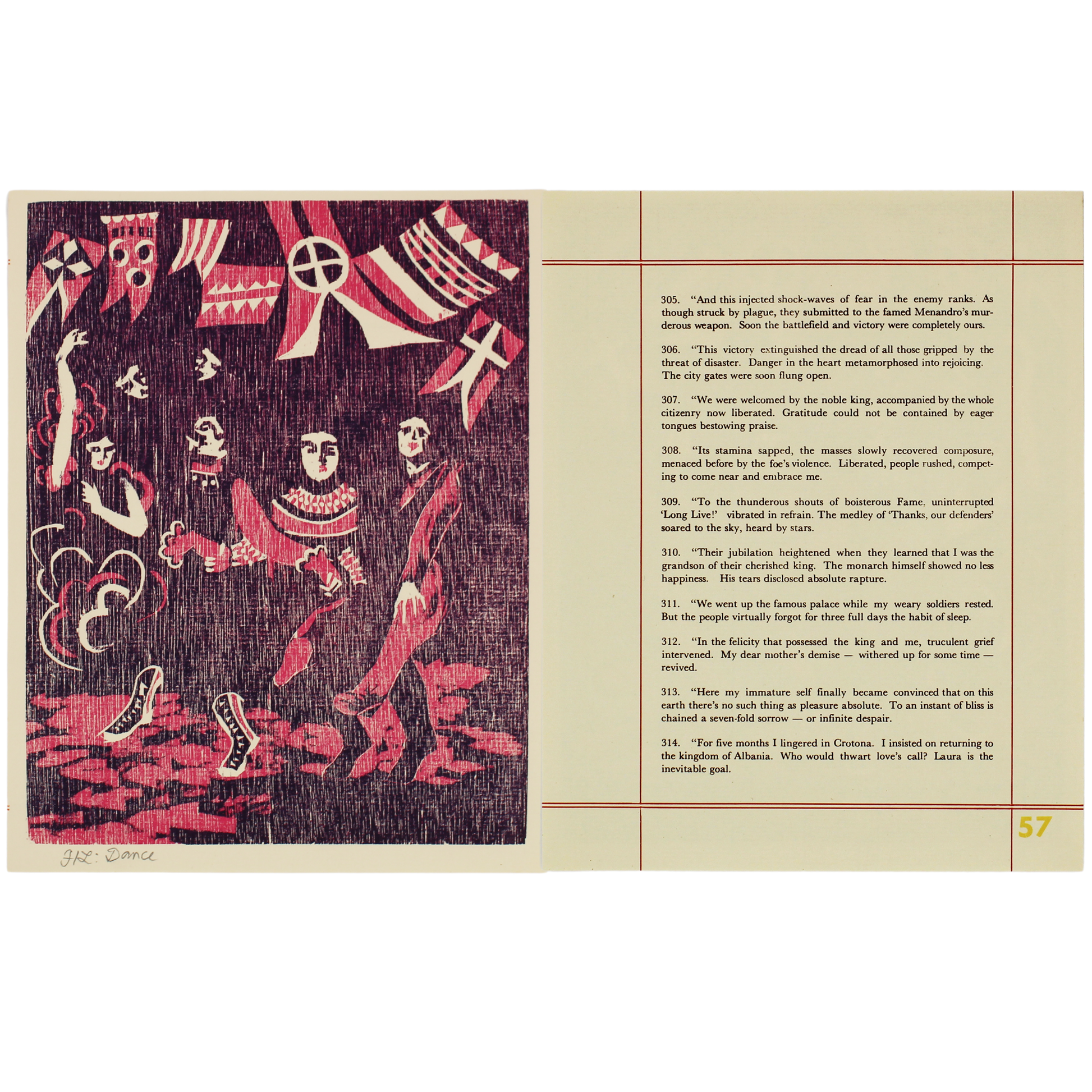 This is a 1977 woodblock (xylograph) print, illustrating specific stanzas from the epic poem to accompany E. San Juan Jr.'s English translation of Francisco Balagtas's Florante at Laura
