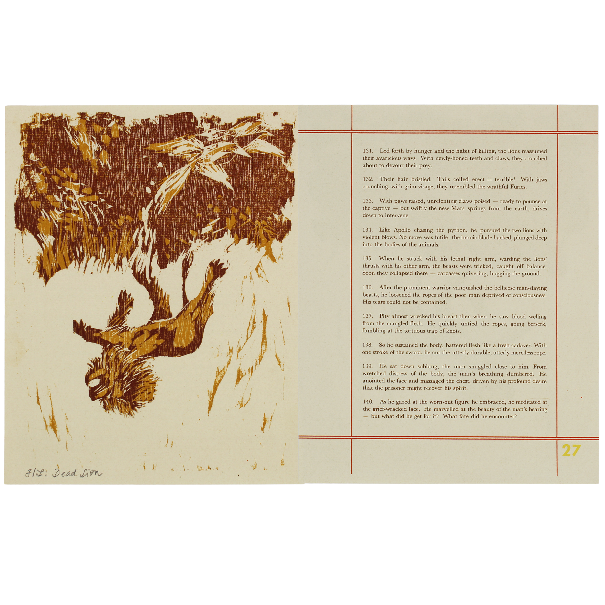 Woodblock print - Dead Lion