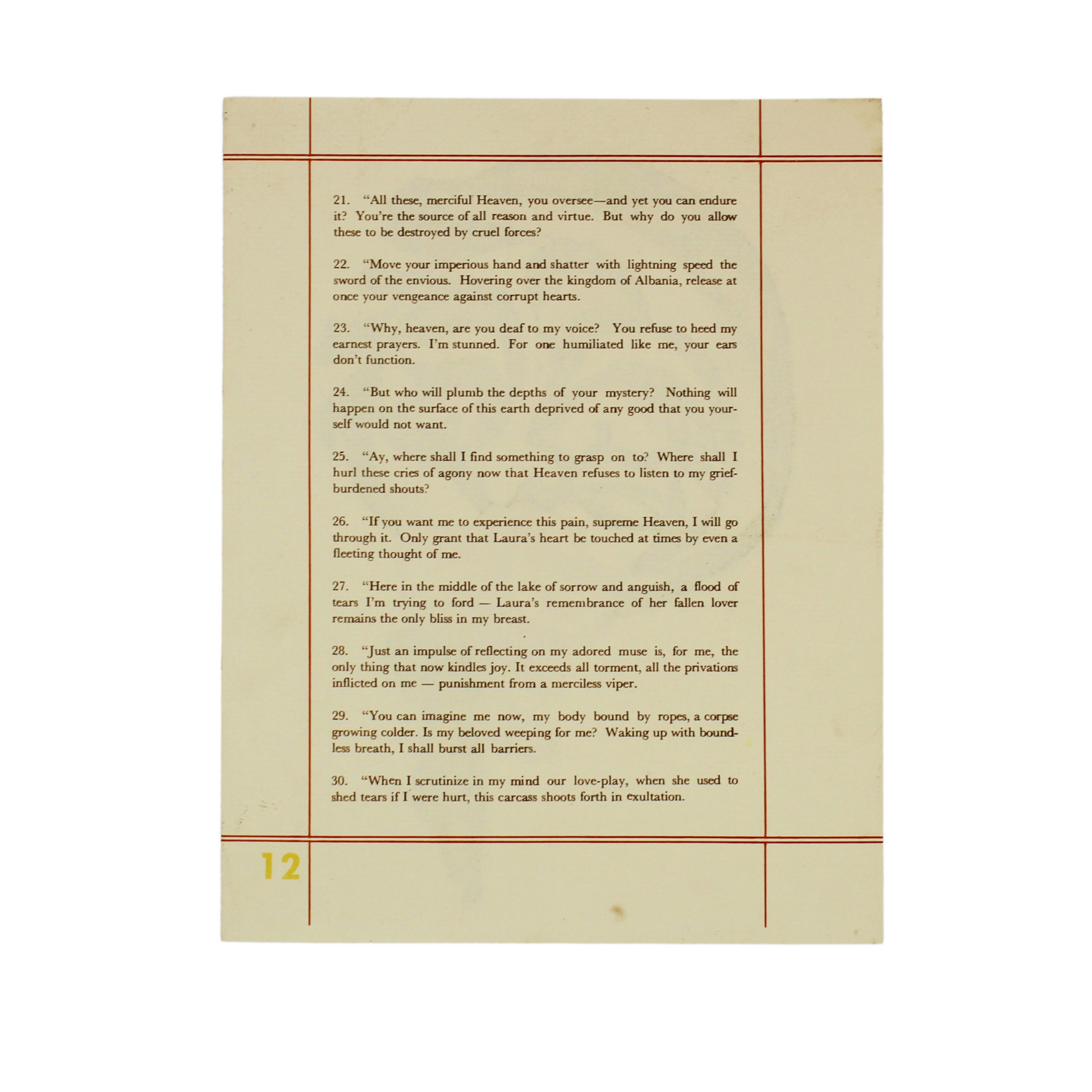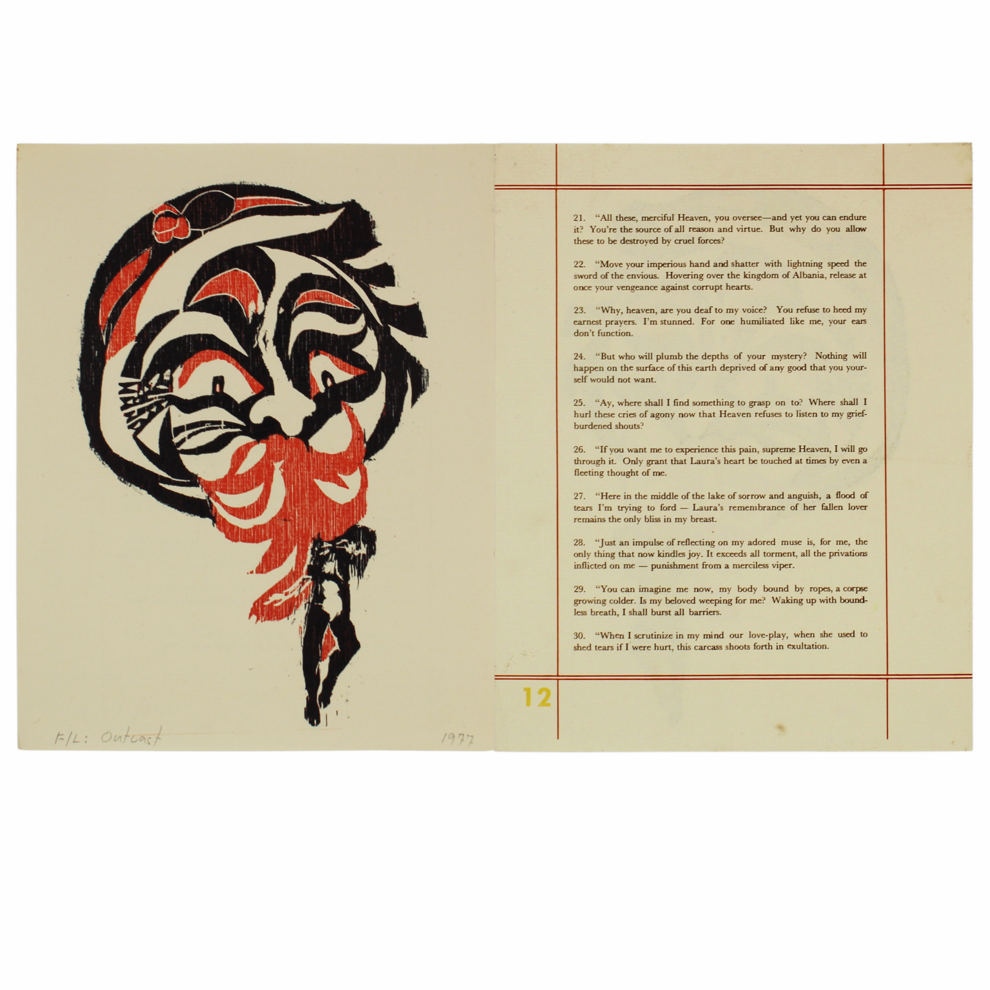 This is a 1977 woodblock (xylograph) print, illustrating specific stanzas from the epic poem to accompany E. San Juan Jr.'s English translation of Francisco Balagtas's Florante at Laura