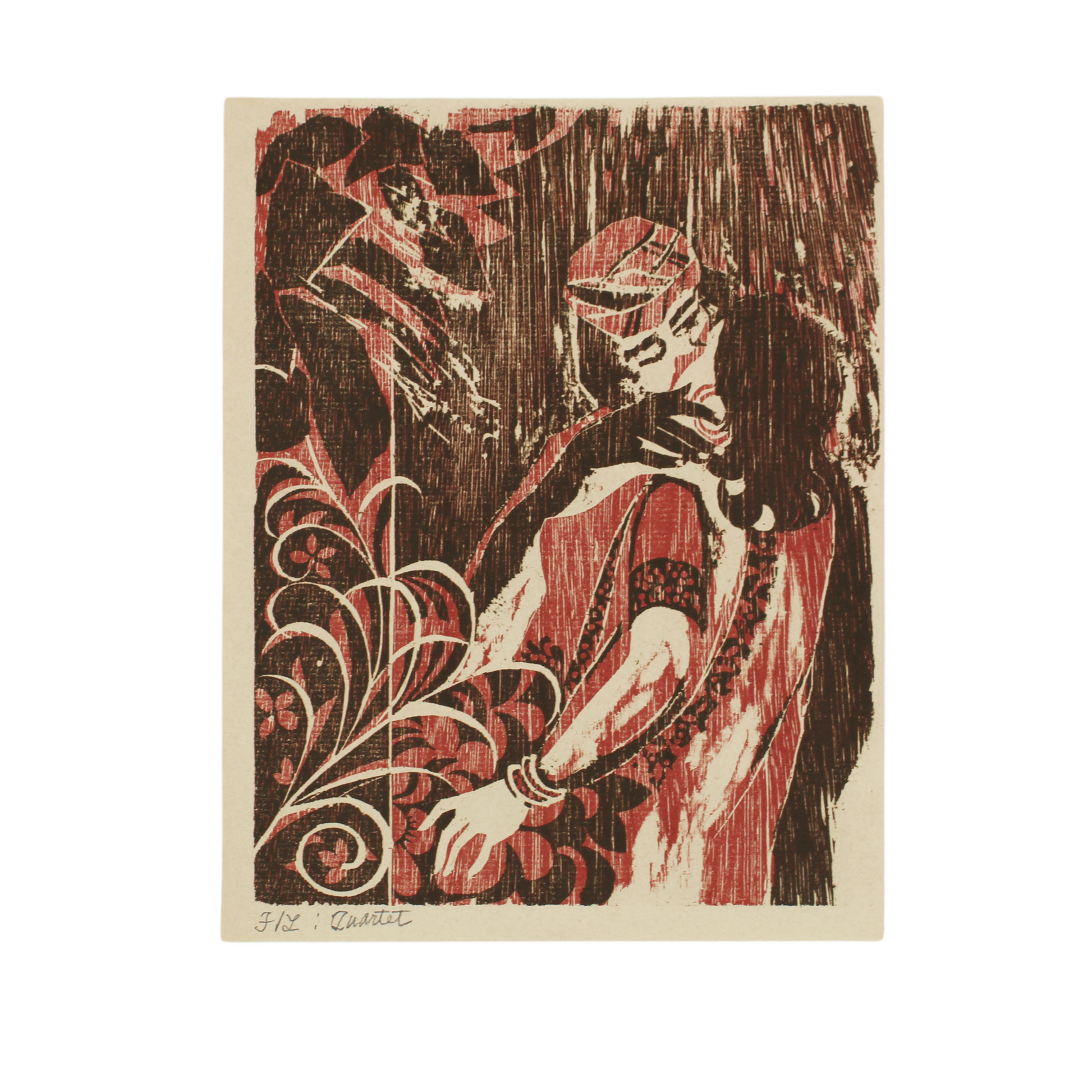 This is a 1977 woodblock (xylograph) print, illustrating specific stanzas from the epic poem to accompany E. San Juan Jr.'s English translation of Francisco Balagtas's Florante at Laura